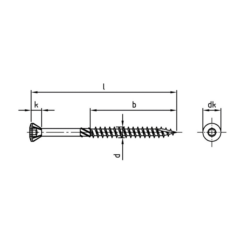 Je draait dit inox C2 – AISI 410 onderdeel netjes in hardhout, omdat de verzonken kop, deeltap, snijribben en scherpe voorgesneden punt helpen om materialen strak aan te trekken met gecontroleerde kracht.