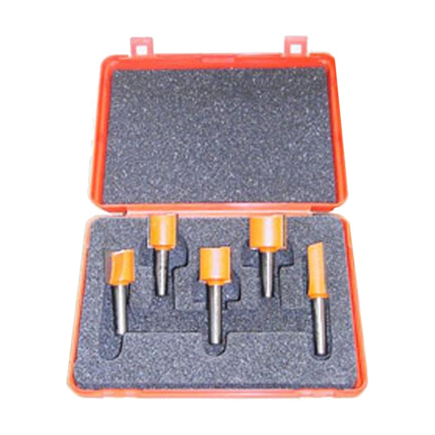 De CMT 5-delige frezenset (S=8mm Z2 HW) biedt een veelzijdige selectie van hoogwaardige frezen voor diverse houtbewerkingsprojecten, netjes verpakt in een duurzaam pvc-kistje.