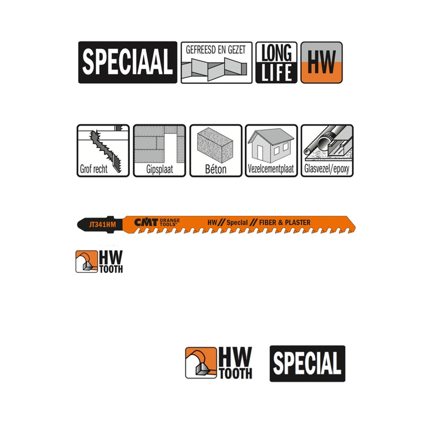CMT Decoupeerzaag grof recht voor cementvezel, beton & gipsplaat L=132mm I=110mm TS=4.3mm TPI=6 HM, 3 stuks - JT341HM-3
