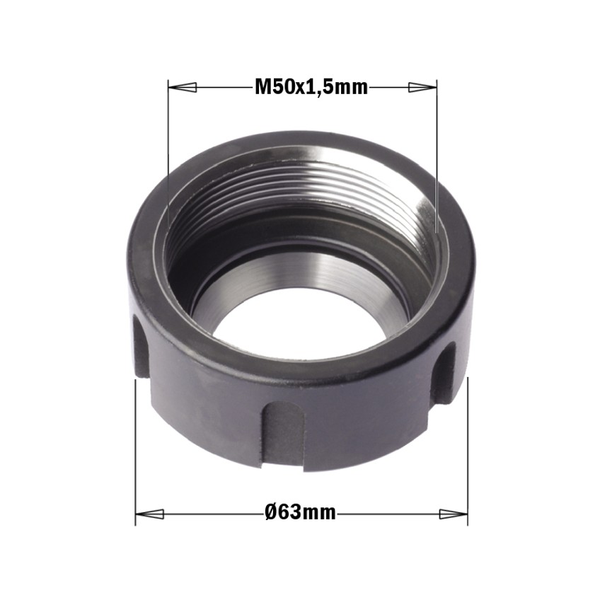 D=63mm x M50x1,5*RH (rechtsdraaiend)*Voor spantang ER40*Met gelagerde ring*