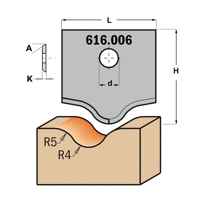 CMT Profielmes voor multiprofielfrees type 6 L=20mm K=2mm MDF materiaal KCR08 / S1920 Profiel Z2 - 616006