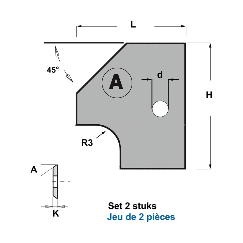 CMT Profielmessen voor 2-delige verstelbare afrond- en afschuinfrees type A3 R3+45° Z1 HWM, 2 stuks - 695.005.A3