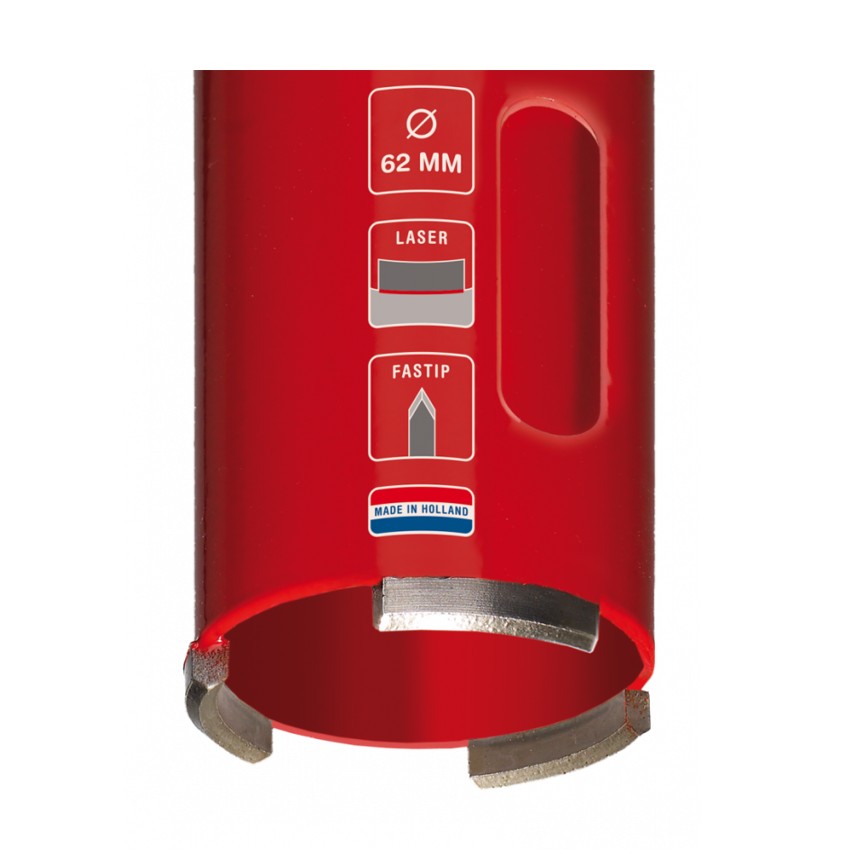 De Carat Dustec® diamant droogboor is ideaal voor droog boren in baksteen en abrasieve materialen. Met lasergelaste Fastip-segmenten en zijwaartse sleuven biedt deze boor snelle aanzet, efficiënte stofafvoer en verhoogde duurzaamheid.