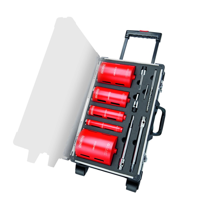 • Vijf diamantboren: Ø 32, 52, 82, 112 en 132 mm voor veelzijdige toepassingen.