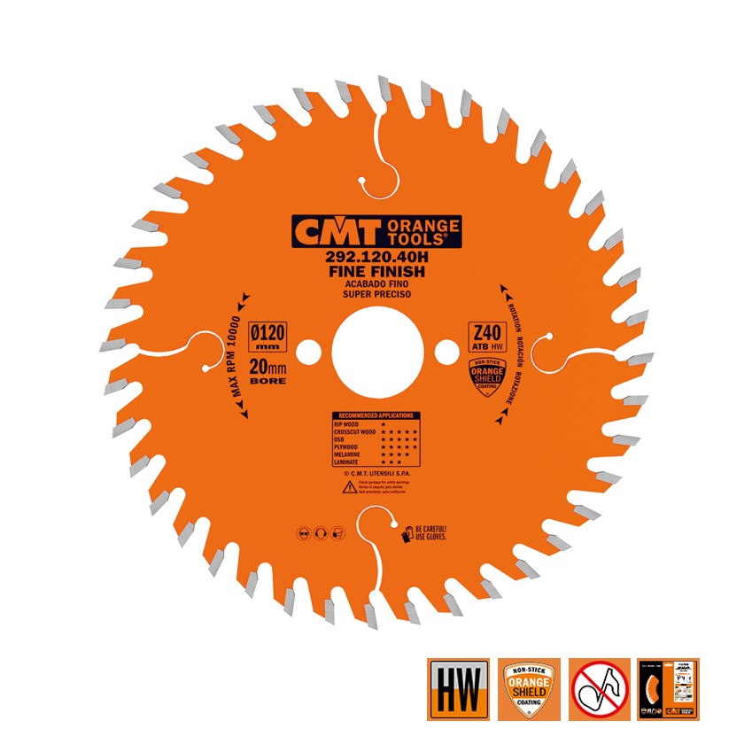 CMT Afkortcirkelzaag voor draagbare machines voor massief hout 120x20x1.8mm Z40 HW - 292.120.40H