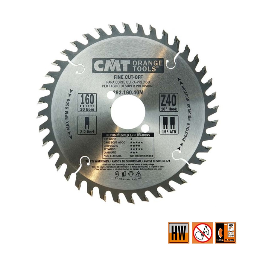 CMT Afkortcirkelzaag voor draagbare machines, voor massief hout 160x30x2.2mm Z40 HW - 292.160.40M
