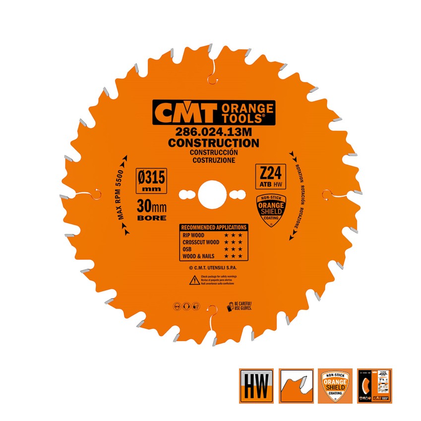 CMT Bouw schulpzaag voor hout met spijkers 315x30x3.2mm Z24 HW - 286.024.13M