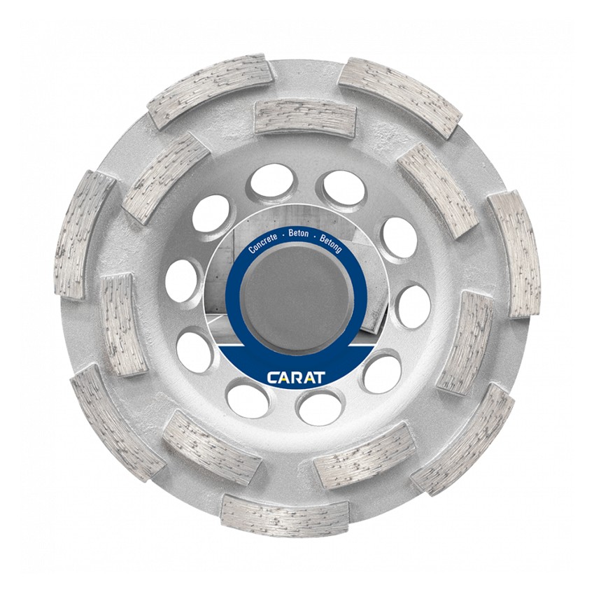 De Carat CUDG Standard slijpkop is ontworpen voor het efficiënt slijpen van betonnen oppervlakken. Voorzien van een enkele rij diamantsegmenten en gaten in de kern, is deze slijpkop geschikt voor gebruik op machines met stofafzuiging, zoals de Carat betonslijpers.
