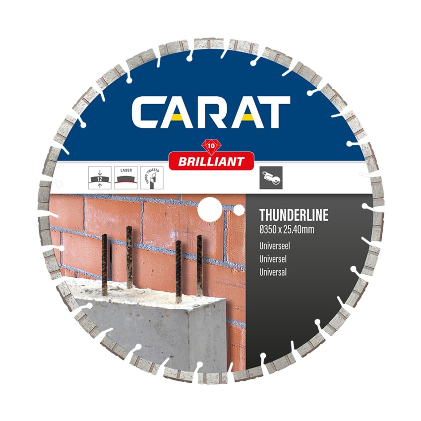 Met de Carat CEB Thunderline diamantschijf haal je een krachtige en veelzijdige zaagoplossing in huis. Deze premium schijf, ontworpen voor universeel gebruik, biedt ongeëvenaarde snelheid en precisie dankzij innovatieve technologieën zoals alternerende TT-segmenten en een speciale diamantcoating.