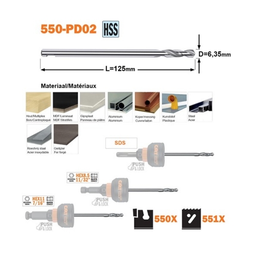 Deze multifunctionele gatzagen van CMT met hardmetalen tanden zijn ontworpen voor gebruik in een breed scala aan materialen, zoals zacht en hard hout, spaanplaat, multiplex, MDF, kunststoffen, gips/gipsplaat, massieve of geperforeerde bakstenen, gasbeton, kanaalplaten en zachte steen (maximale hardheid 30 N/mm2). De nuttige boordiepte is 52mm.