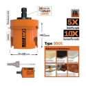 De speciale tandgeometrie met gelijkmatige vertanding van de CMT klokzagen zorgt voor een eenvoudigere zaagsnede, betere spaanafvoer en beschermt daarmee tegen vastlopen en oververhitting. De tanden zijn om-en-om schuin en zijdelings gezet om de frictie en de snijdruk te minimaliseren. Ideaal voor zacht staal (tot 1000 N/mm2), RVS, non-ferrometalen, aluminium, gietijzer, koper en zink. De maximum inboordiepte is 38mm.