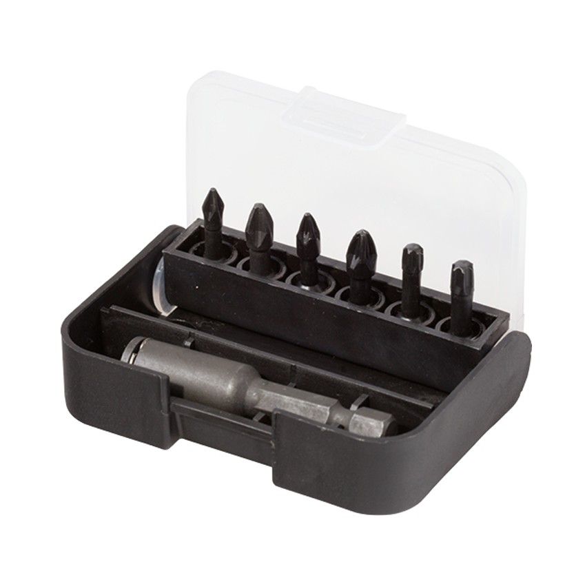 Deze 10-delige bitset bevat de meest gebruikte bits in industrie- en bouwtoepassingen. De bits zijn 25 mm lang, met 1/4" C 6,3 aansluiting. De set wordt geleverd in een stevige box met een magnetische bithouder van 60 mm. Ideaal voor dagelijks professioneel gebruik.