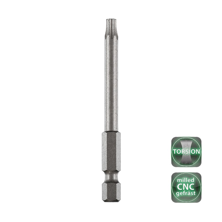 De Cobit Blade 1/4" E 6,3 – TX TORSION is een lange Torx-bit (90mm) met verlengde TORSION-zone en CNC-gefreesde passing – ideaal voor zware toepassingen en moeilijk bereikbare schroefverbindingen.