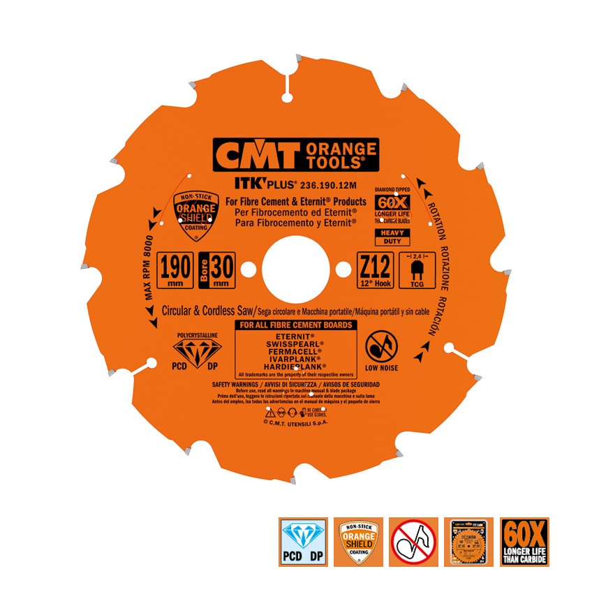 CMT Diamantzaagblad voor sidings, cementvezel & gipsplaat 190x30x2.4mm Z12 DP - 236.190.12M
