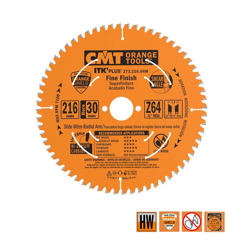 CMT Dunne fijne afkortzaag voor massief hout en beplakte plaat 216x30x1.8mm Z64 HW - 273.216.64M