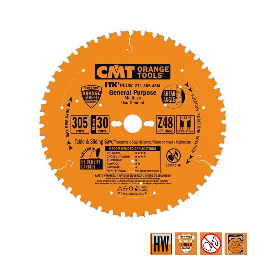 CMT Dunne schulp-en afkortzaag voor massief hout & multiplex 305x30x2.6mm Z48 HW - 271.305.48M