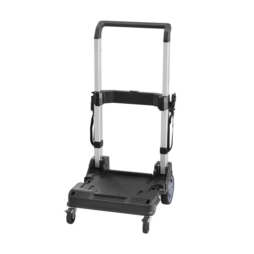Grote achterwielen maken het gemakkelijk om over oneffen oppervlakken te rijden, terwijl het vergrendelbare voormechanisme uw stapel veilig op zijn plaats houdt wanneer deze stilstaat. Compact en lichtgewicht, de trolley kan worden opgevouwen voor eenvoudige opslag wanneer deze niet in gebruik is, waardoor het een perfecte aanvulling is op elk modulair gereedschapssysteem.