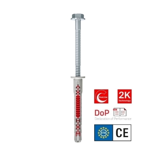 De Fischer constructieplug SXR FUS met zeskantschroef is een bevestiging van kwalitatief hoogwaardig materiaal. Dankzij de bijzondere geometrie van de plug kan de SXR in massieve en geperforeerde bouwmaterialen worden gebruikt. Door de geringe verankeringsdiepte van slechts 50 mm kan de constructieplug bijzonder efficiënt worden verwerkt.