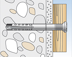 De Fischer nagelplug N-S met verzonken kop bestaat uit een plug van kwalitatief hoogwaardig nylon en een gegalvaniseerde nagelschroef. Deze zijn voor een snelle montage reeds vooraf gemonteerd. De Fischer nagelplug N-S met verzonken kop is ideaal voor de bevestiging van houtconstructies in allerlei bouwmaterialen in de interieurbouw.