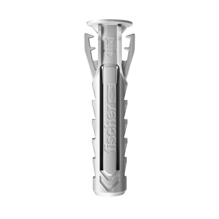 De krachtige Fischer SX Plus plug voor volle en geperforeerde ondergronden. Door de viervoudige spreiding geleidt de fischer plug SX Plus de krachten optimaal in volle en geperforeerde ondergronden, zoals beton en metselwerk. De handige gripvleugels van de plug maken het mogelijk de schroef te plaatsen zonder deze aan te draaien, u heeft uw handen vrij. De dunne kraag voorkomt dat de plug verder in het boorgat wordt geduwd tijdens montage, maar kan nog steeds gemakkelijk door het aanbouwdeel worden geduwd. De fischer SX Plus plug van hoogwaardig nylon is de krachtige keuze voor het bevestigingen in volle en geperforeerde ondergronden.