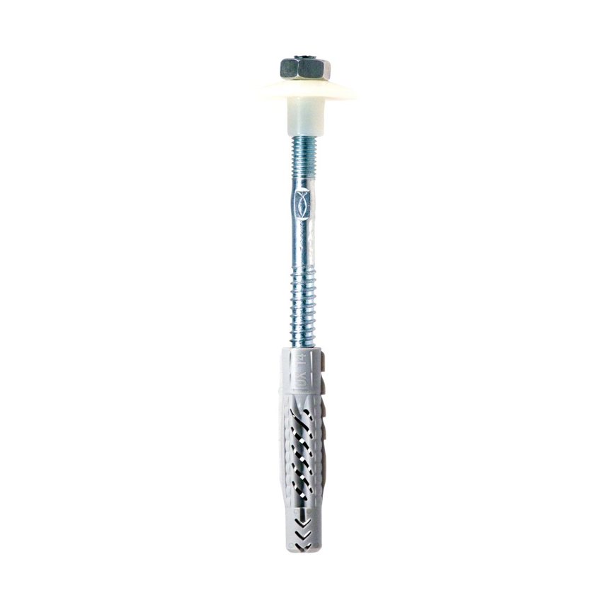 Complete bevestigingsset voor een eenvoudige en snelle montage van wastafels en urinoirs. Bestaande uit twee Universeelpluggen UX 14x75, twee stokschroeven M12x150 gegalvaniseerd, twee zeskantmoeren M12 en twee flensmoeren. De Universeelplug UX zonder rand is geschikt voor zowel een voorsteek- als doorsteekmontage - kan in alle massieve en geperforeerde bouwmaterialen en plaatmateriaal worden verwerkt. Met de flensmoeren is een traploze uitlijning van het sanitairkeramiek mogelijk.