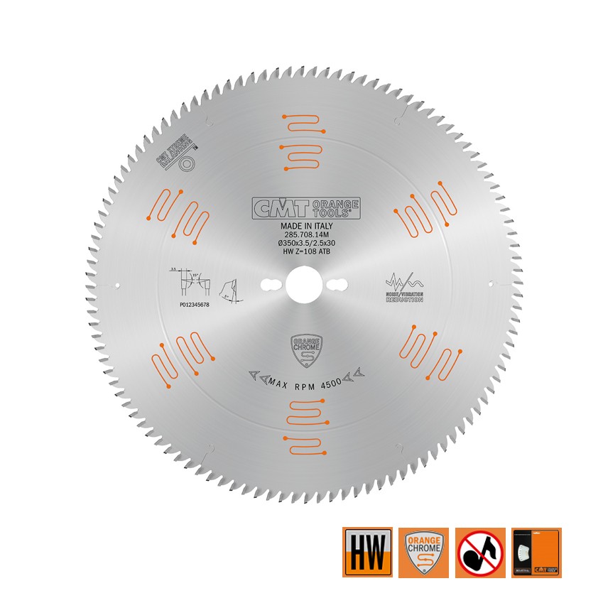 CMT Geluidsarme HW afkortzaag geschikt voor massief hout 350x30x3.5mm Z108 HW - 285.708.14M