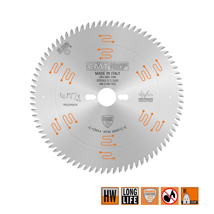 CMT Geluidsarme zaag met chroom-coating voor HPL & kunststof 250x30x3.2mm Z80 HW - 281.680.10M