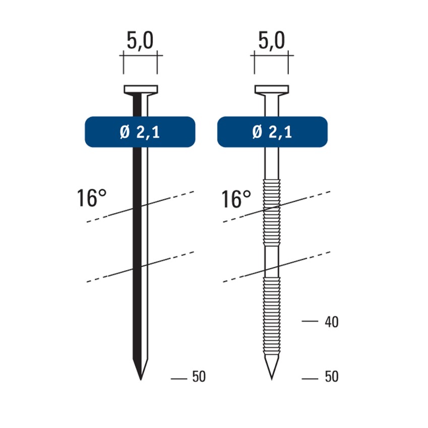 • Hoek: 16° spiraalvormige coilnagels, compatibel met standaard coilnailers