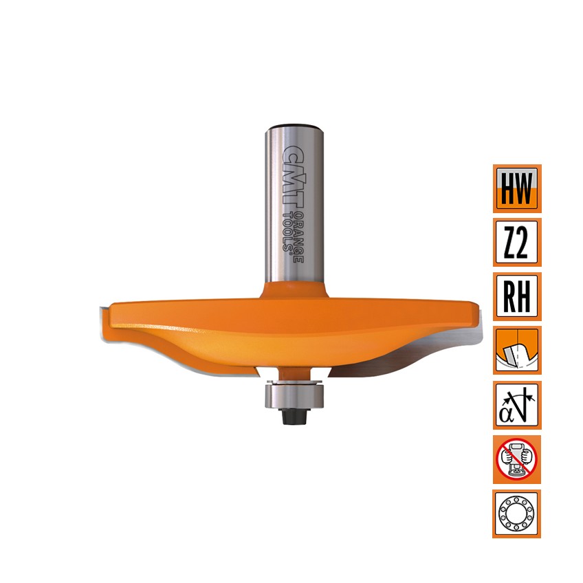 De traditionele CMT-paneelfrezen met geleidelager blinken uit door nauwkeurigheid en kwaliteit. U heeft de keuze uit 7 profielen. Vanzelfsprekend zijn de frezen voorzien van een terugslagbeveiliging en de oranje PTFE anti-aankoek beschermlaag.
