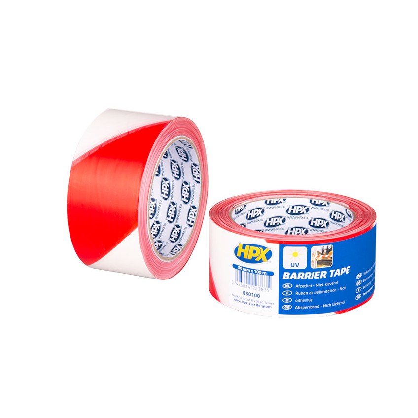 De HPX Safety textile tape - wit/rood (48 mm x 25 m) is een sterke waarschuwings- en markeringstape voor het duidelijk afbakenen van gevaarlijke zones en werkgebieden.