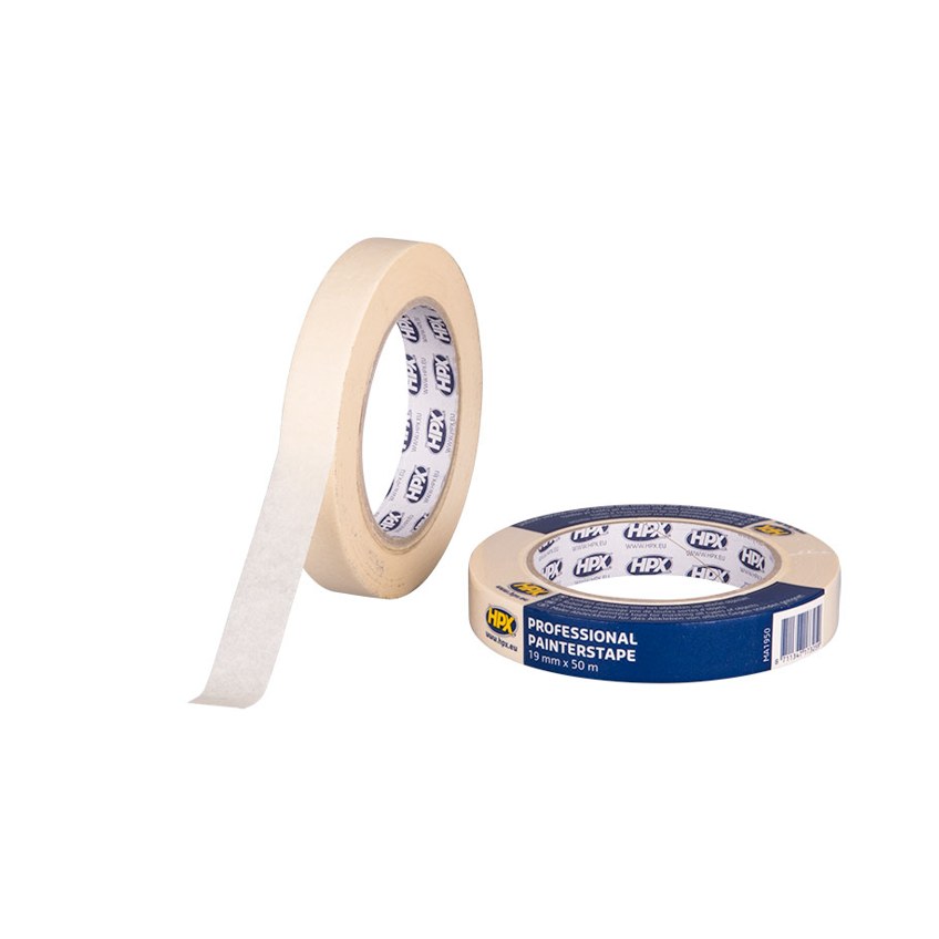 De HPX Masking Tape 60°C is een crèmewitte afplaktape van 50 mm breed en 50 m lang. Ideaal voor schilderwerk, afdekkingen en tijdelijke bevestigingen met een temperatuurbestendigheid tot 60°C.