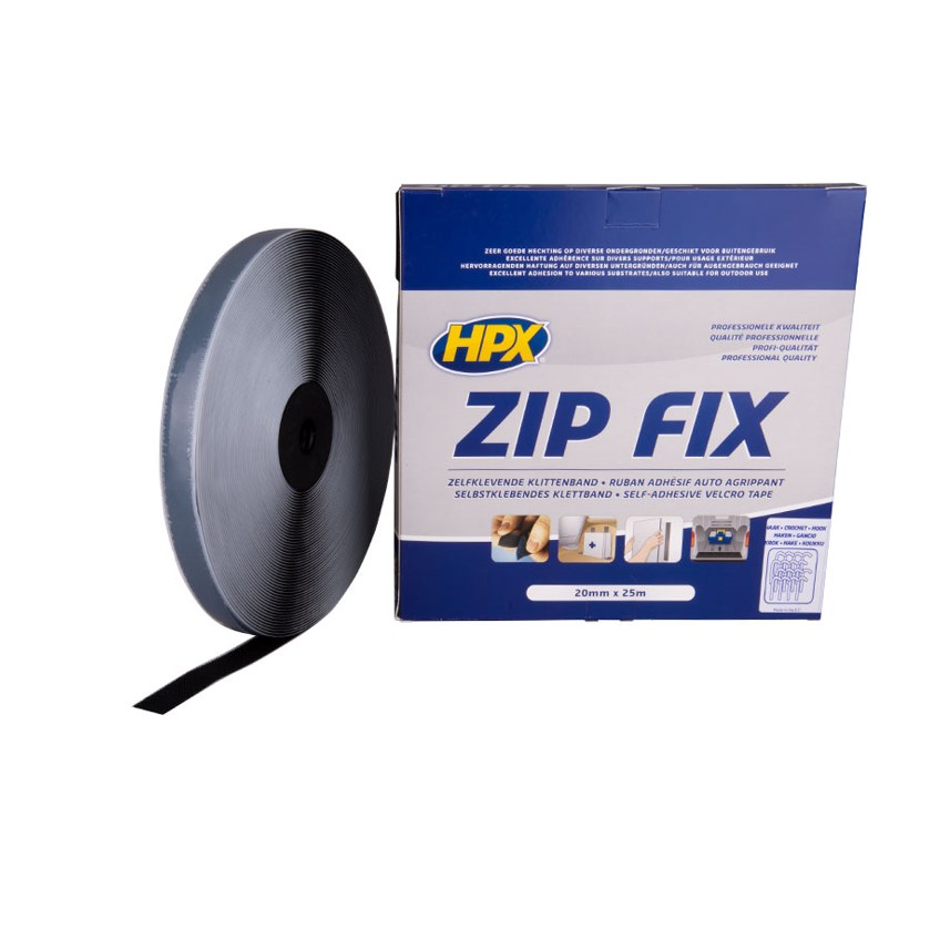 De HPX Zip Fix is een zelfklevende, zeer sterke klittenband. Geschikt voor het bevestigen van lichte en zware voorwerpen, bv.: automatten, audioapparatuur, gereedschap in de auto, etc... Goede hechting op metaal, glas, hout, keramiek en kunststoffen. Geschikt voor buitengebruik.