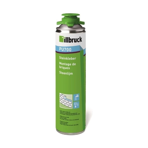 illbruck PU700 Steen- en Houtlijm is een snel uithardende 1K polyurethaan lijm voor de verlijming van verschillende steenachtige en houten ondergronden.PU700 is vrij van CFK-, HCFK- en HFK. PU700 Steen- en Houtlijm is KOMO gecertificeerd en voldoet aan de eisen van het bouwbesluit voor dragende wanden. De technische universiteit Eindhoven heeft tests uitgevoerd volgens NEN-EN 1052-2. Deze tonen aan dat PU700 geschikt is voor de verlijming van diverse soorten kalkzandsteen, keramische bouwblokken en cellenbeton.