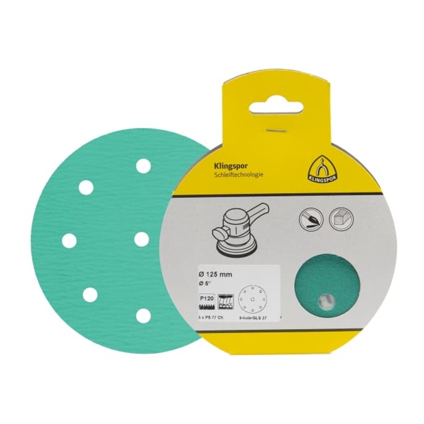 Klingspor 5 stuks PS 77 CK T-ACT schuurschijf met klittenband voor verf, plamuur, grondlagen & composiet 150mm, korrel 180, vorm GLS47 - 360348