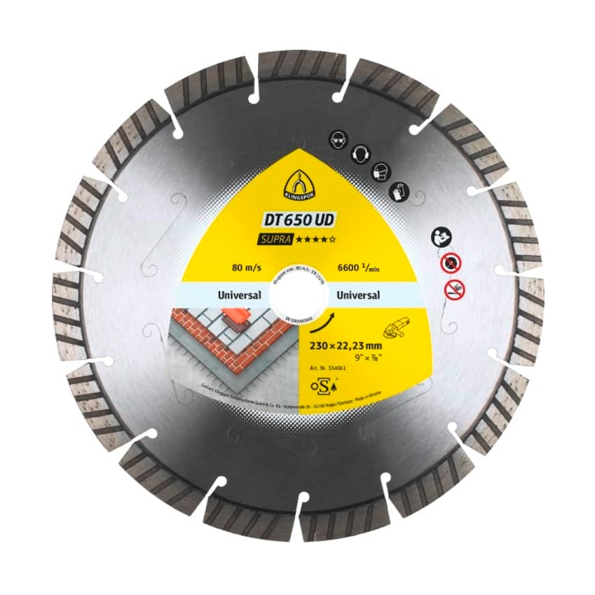 De DT 650 UD Supra van Klingspor is een hoogwaardige diamant doorslijpschijf die universeel inzetbaar is op vrijwel alle harde bouwmaterialen. Dankzij zijn speciale turbosegmenten snijdt deze schijf met extreem hoge snelheid door beton, kalkzandsteen, bouwplaatsmateriaal en gewapend beton. De lasergelaste uitvoering en Supra-klasse zorgen voor maximale veiligheid en betrouwbaarheid bij dagelijks gebruik. Voorzien van een vibratiearme detenso-kern levert de DT 650 UD Supra niet alleen krachtige prestaties, maar ook een rustige, gecontroleerde loop. Dit maakt hem bijzonder geschikt voor intensieve slijptoepassingen met haakse slijpers, waarbij precisie en snelheid centraal staan. Een echte allrounder voor professionals die in uiteenlopende materialen werken zonder steeds van schijf te wisselen.