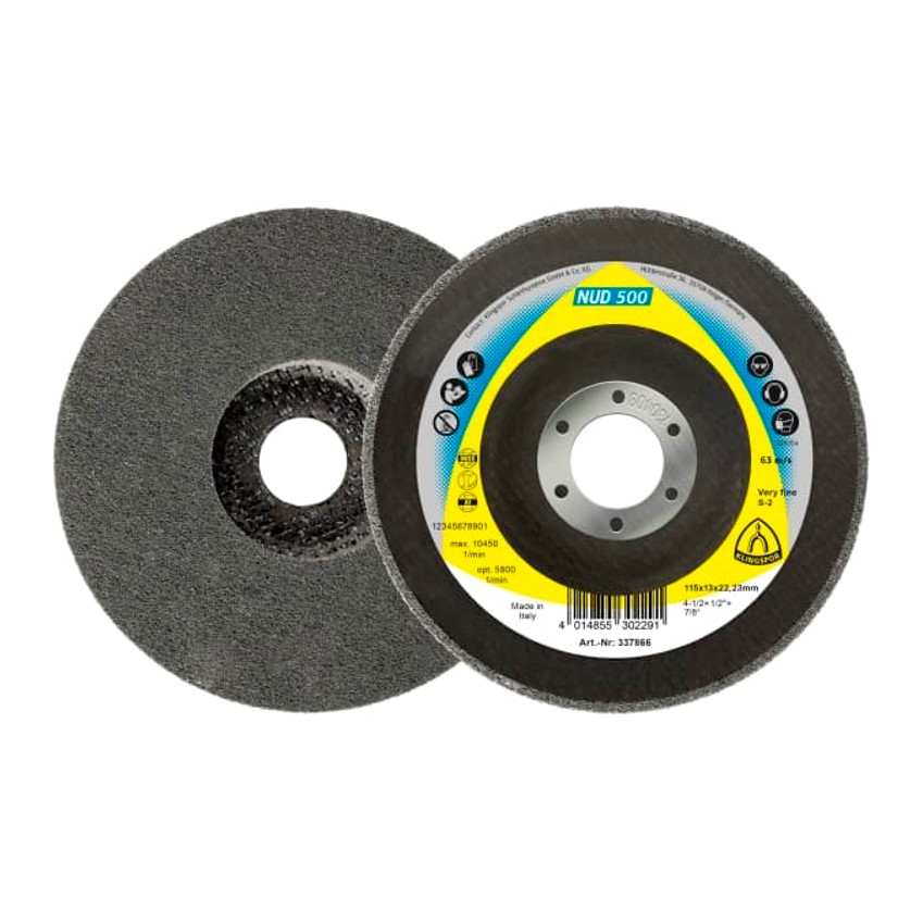 De Klingspor NUD 500 vlies­­schijf combineert een kunsthar­sbinding met hoogwaardige siliciumcar­bidekorrels voor een gelijkmatige materiaal­afname. Zo verwijder je oxidatiestrepen en lichte lasnaden zonder het staaloppervlak te beschadigen. Je monteert de schijf eenvoudig op een haakse slijper (22,23 mm opname) en kunt direct aan de slag met grof tot ultrafijn schuren. De open structuur garandeert een constant kras­vrij resultaat.
