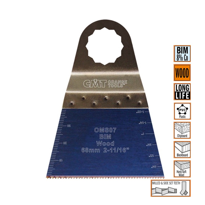 CMT Multitoolzaagblad Fein Supercut voor hout & kunststof W=68mm I=40mm Bim 8% Co, 50 stuks - OMS07-X50