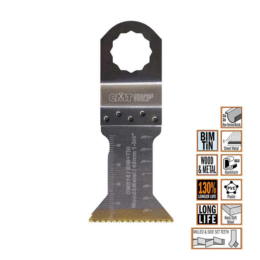 CMT Multitoolzaagblad Fein Supercut voor hout & metaal W=45mm I=48mm Bim TIN - OMS16-X1