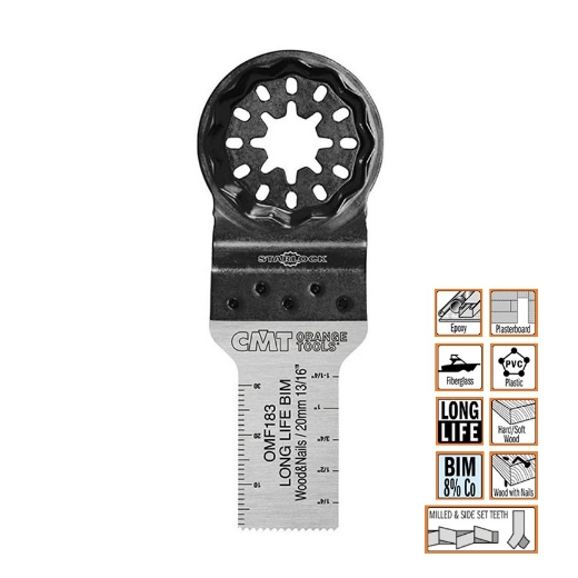 CMT Multitoolzaagblad Starlock voor hout met spijkers & glasvezel W=20mm I=34mm Bim 8% Co, 50 stuks - OMF183-X50