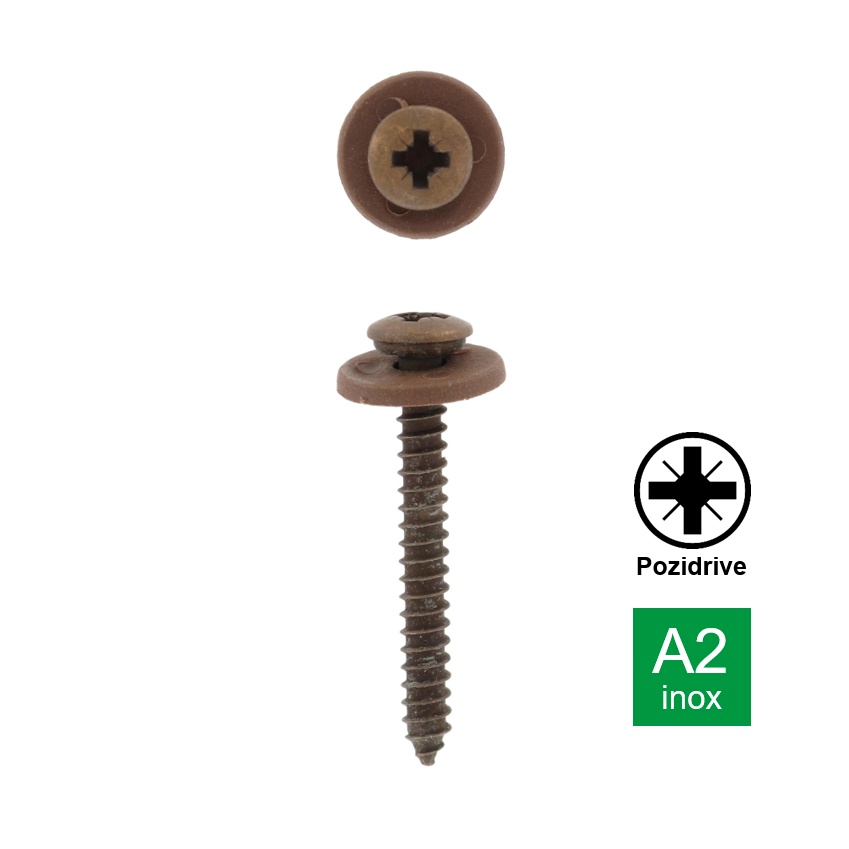 Plaatschroef voor vensterbank met bolle kop en nylon ring Pozidrive PZ2 Bruin 3.9x19 inox A2