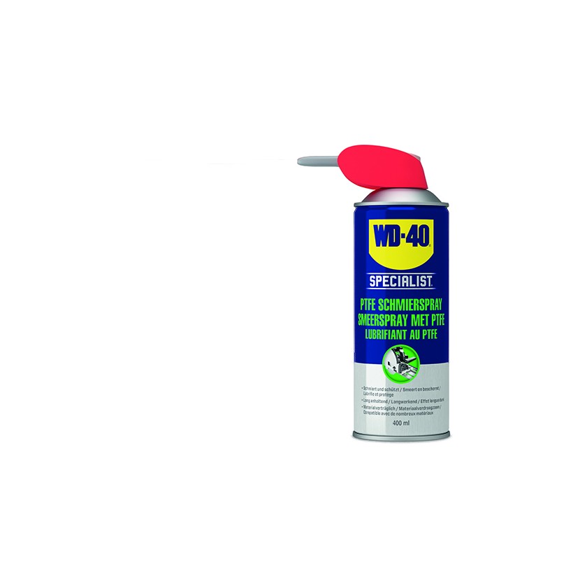 De WD 40 400ml smeerspray met PTFE biedt effectieve smering en bescherming voor verschillende oppervlakken. Dit product vermindert wrijving en slijtage en is bestand tegen vocht. Het is geschikt voor metaal, glas, vinyl, rubber en kunststof.