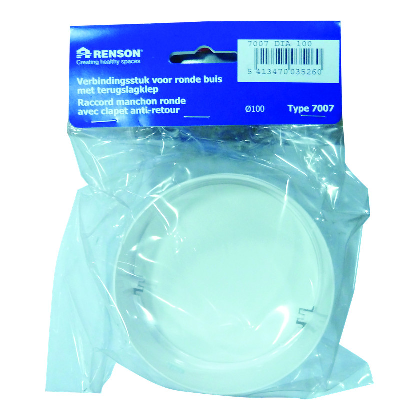 Deze Renson 7007 verbindingsstuk met klep is ontworpen voor het verbinden van ronde buizen met een diameter van 100mm. Het biedt een betrouwbare oplossing voor ventilatiesystemen. Het accessoire ondersteunt efficiënte luchtstroombeheer in diverse omgevingen.