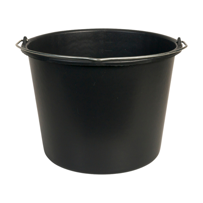 Deze Gripline-d emmer heeft een inhoud van 20 liter en is zwart van kleur met een stevige knopbeugel. De handige maatverdeling maakt het eenvoudig om de inhoud precies te meten. Dit product is van PVC, ontworpen voor een betere handling met een fraaie afwerking.