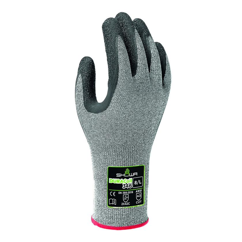 Deze werkhandschoen showa Duracoil 346 L biedt bescherming tegen snijwonden en schuurplekken. De latex palmcoating beschermt tegen vloeistoffen en ruwe oppervlakken. De snijweerstand C voldoet aan de EN388:2016 norm.