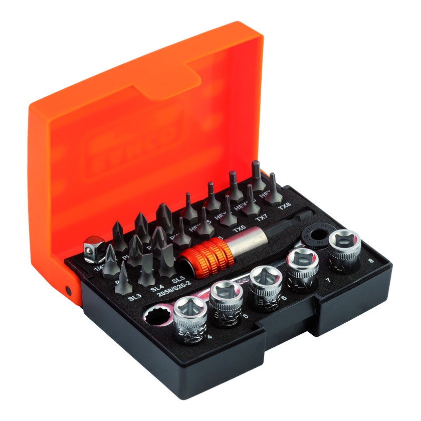 Deze bit en doppenset van Bahco levert de nodige tools voor verschillende bevestigingstaken. Het bevat een verzameling bits en doppen voor veelzijdigheid.