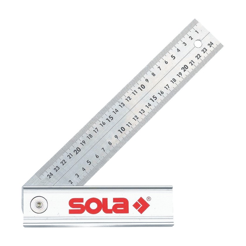 Deze verstelbare winkelhaak van Sola biedt precisie en stevigheid. Hij heeft een blok van aluminium en een arm van roestvrij staal voor duurzaamheid. Het ontwerp omvat drie vergrendelingshoeken: 45°, 90° en 135°. Dit hulpmiddel is geschikt voor zowel professionele als doe-het-zelf projecten.