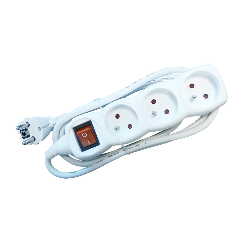 Deze stekkerblok biedt drie aansluitingen en bevat een schakelaar voor gemakkelijke bediening. De kabel van 1,5 m biedt flexibiliteit in plaatsing. Het is geschikt voor verschillende toepassingen waar meerdere apparaten stroom nodig hebben.