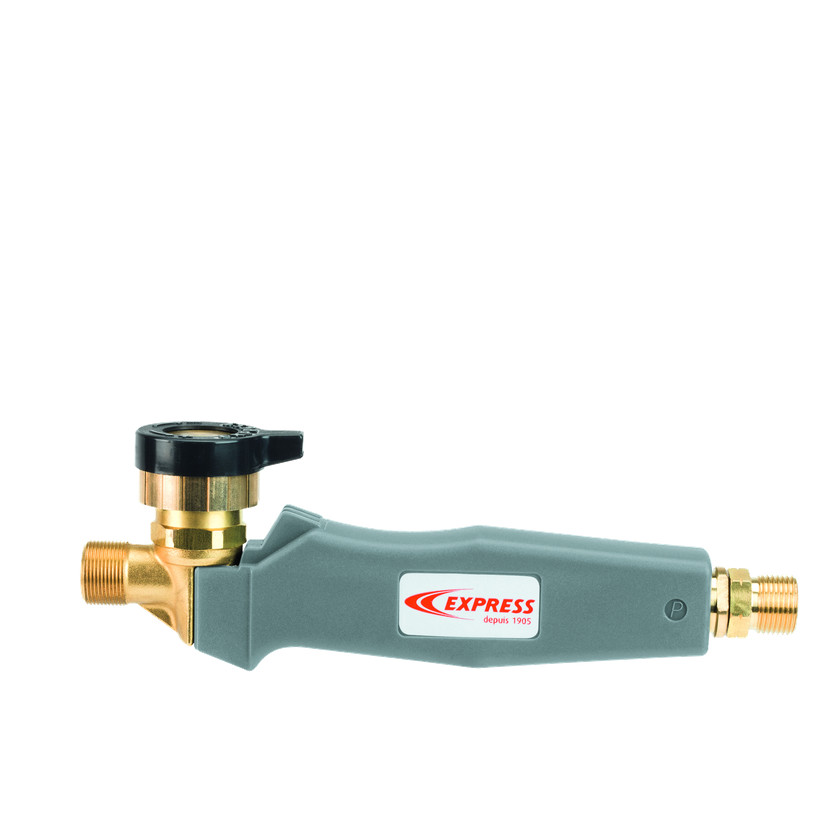 Deze express 602 handgreep voldoet aan de eisen voor verwarmingstoorts verbindingen. De geïntegreerde draaiknop maakt eenvoudige bediening mogelijk. Het bevat een 3/8 linkse schroefdraad en een dubbele afdichting voor betrouwbaarheid. Het ontwerp zorgt voor een stevige pasvorm voor duurzaam gebruik.