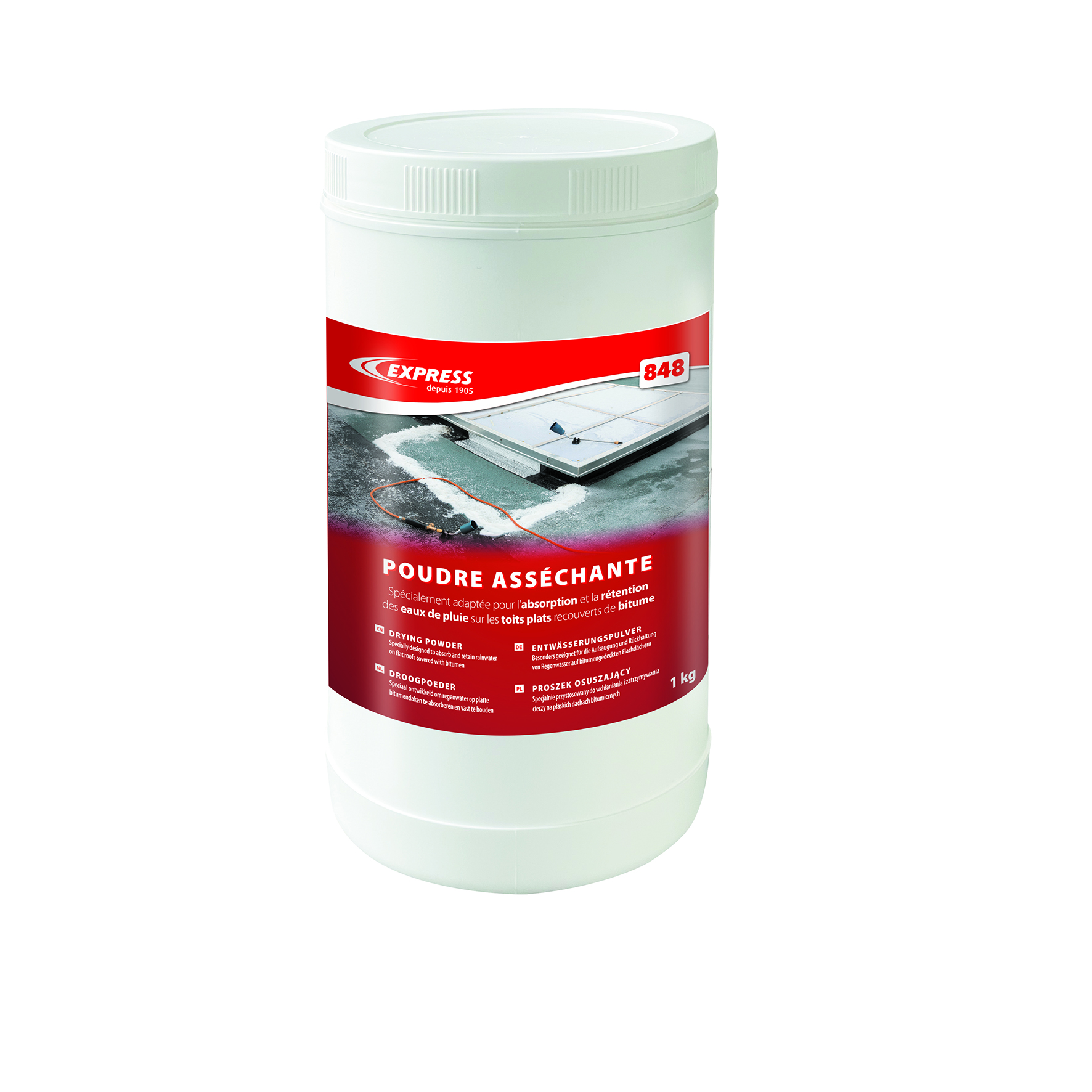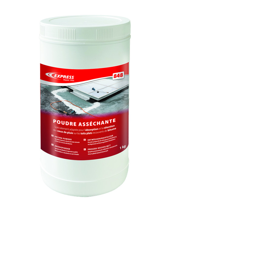Deze express 848 droogpoeder absorbeert regenwater en houdt het vast op platte daken. Dit bereidt het oppervlak voor op asfaltafdichting vóór de werkzaamheden. Gebruik dit product als je effectief vocht op het oppervlak wilt beheersen.