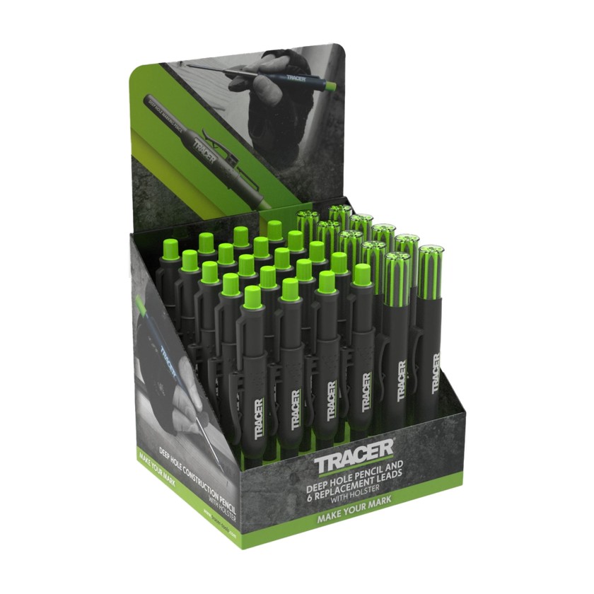 Deze tracer display bevat diepe potloodmarkers en navullingen voor het markeren en schrijven. Het is geschikt voor werkplaatsen en ambachten.